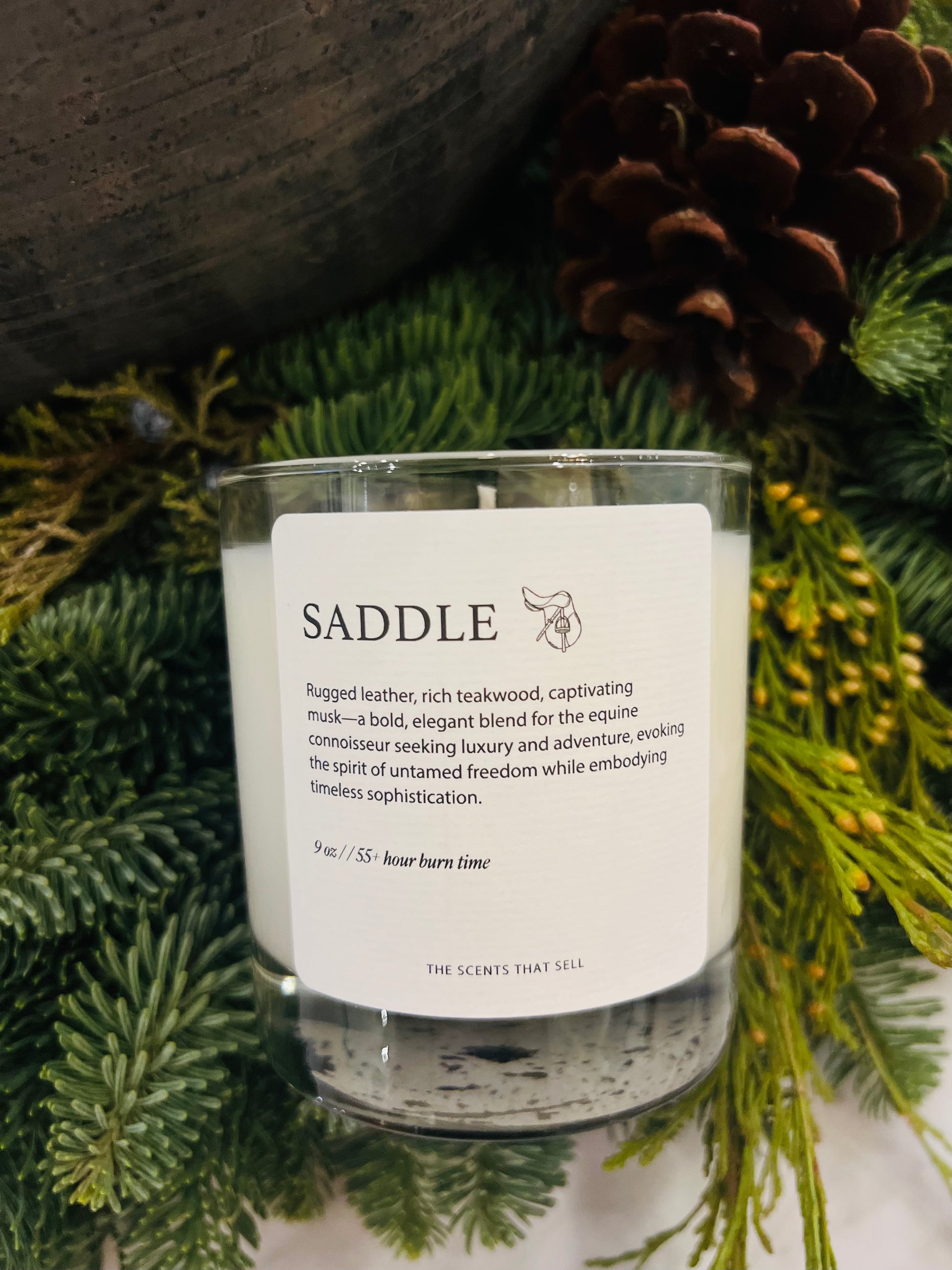 Immerse yourself in the refined warmth of Saddle, a candle that captures the essence of classic sophistication and adventure. The fragrance unfolds with the rich allure of aged leather, seamlessly blended with hints of sun-warmed teakwood and a whisper of amber musk. Each flicker evokes the quiet strength of an heirloom saddle, the spirit of open trails, and the intimacy of quiet evenings by the fire.